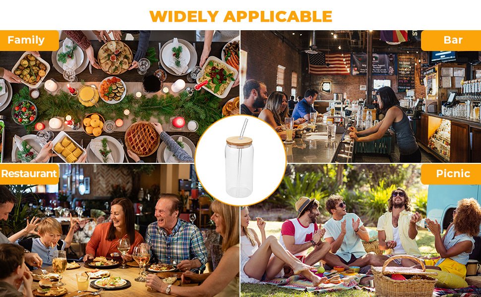 ✅Bamboo Lids with Silicone Strip: Each drinking glass cup is accompanied by a bamboo lid. A circular hole of silicone is incorporated at the top of the lid to accommodate a straw. At the base of the lid, a ring of silicone strips serves as a sealant, effectively preventing leaks caused by tilting cups. (Please note to dry the lid after cleaning to last longer)
