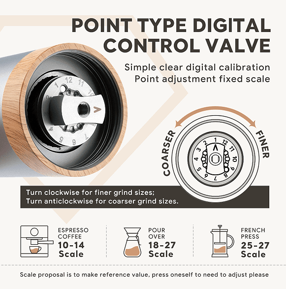 SKU: PSGM2213. Hand-shaking coffee bean grinder. (Bean warehouse large capacity 30g, multi-gear grinding control coffee powder specifications)