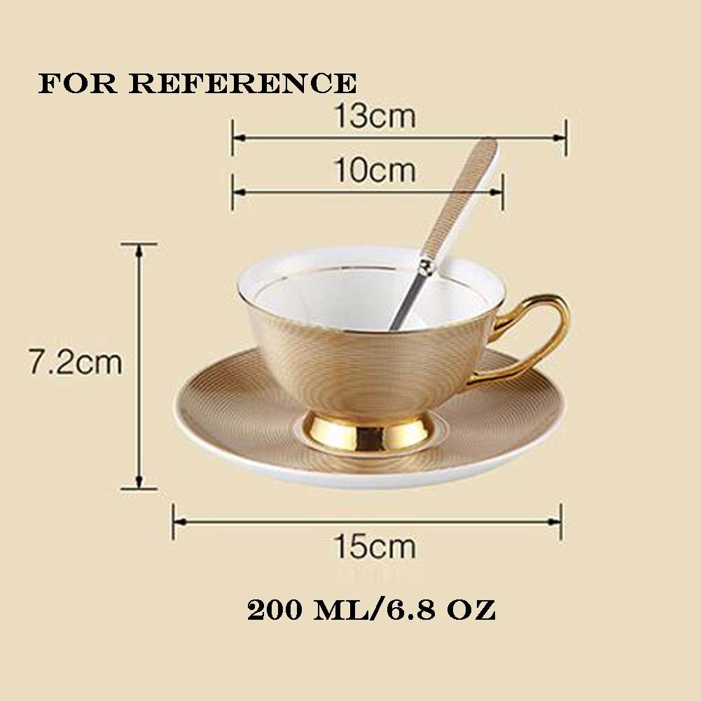 This coffee cup set is made of fine bone china (up to 45%). Ideal to serve snacks or desserts accompanied by tea or coffee. This coffee cup set could also fresh up you teatime, tea party and birthday party. The flower trimmed with gold color on the teacups set enables it to create an elegant teatime table for you. Hand wash is recommended for better preserving the pattern on the ceramic coffee cup set. Please do not put them in microwave and dishwasher. Your could remove the tea stains with lemon juice or vinegar. The pH of lotion should be 11 to 11.5.