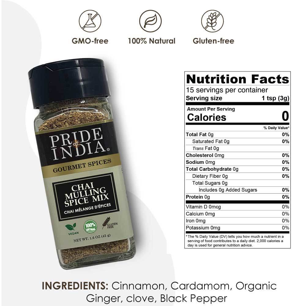 Home > Pride of India – Chai Masala Mulling Spice Mix – Gourmet Spice Mix for Teas & Coffee – Caffeine Free – Authentic Mulling Spice Blend – Vegan