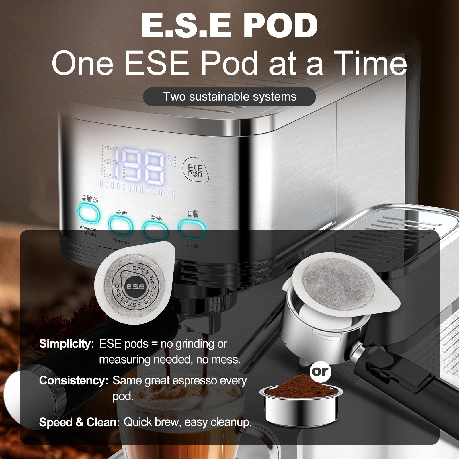 ☕ESE Pod Filters, Single, and Double Filter Options - The Single Shot Filter gives a concentrated flavor, the Double Shot Filter offers a bolder brew, and the ESE Pod Filter provides quick, mess-free convenience. Whether you prefer a solo espresso or a robust double shot, these filters have you covered.