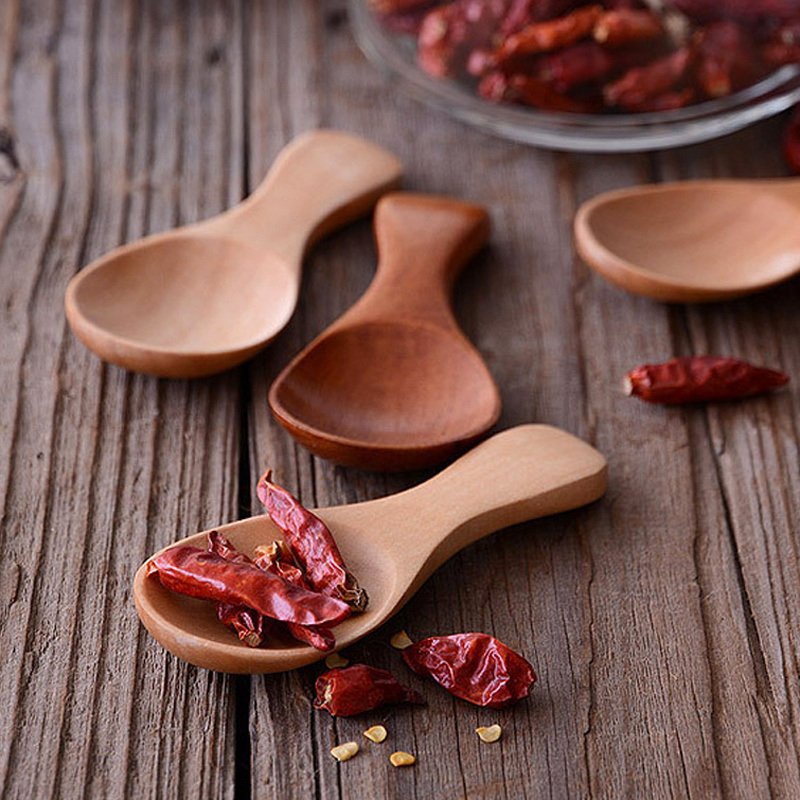 4Pcs Mini Wooden Kitchen Spoons Small Short Handled Salt Spoon Sugar Spice Scoop Condiment Spoon Tea Coffee Scoop; Wood Kids Spoon Baby Feeding Tableware Features: Small wooden spoon made of natural schima superba wood. Brief style; simple & subtle elegance. Perfect for scooping sugar; salt; spice; coffee; tea and various types of condiments. Short handle & mini size makes it a good baby feeding/training spoon. Product Specification: Product Name: 4Pcs Mini Wooden Spoon Set